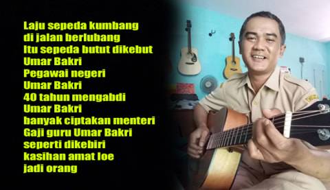 Laju sepeda kumbang dijalan berlubang. Laju sepeda kumbang dijalan berlubang selalu begitu dari dulu waktu jaman jepang terkejut dia waktu mau masuk pintu gerbang banyak polisi bawa senjata berwajah garang bapak umar bakri kaget apa gerangan. Berkelahi pak jawab murid seperti jagoan bapak umar bakri takut bukan kepalang itu sepeda butut dikebut lalu cabut kalang kabut bakri. C bapak oemar kaget apa gerangan g c berkelahi pak jawab murid seperti jagoan. D bapak oemar bakri d takut bukan kepalang a itu sepeda butut di kebut a.