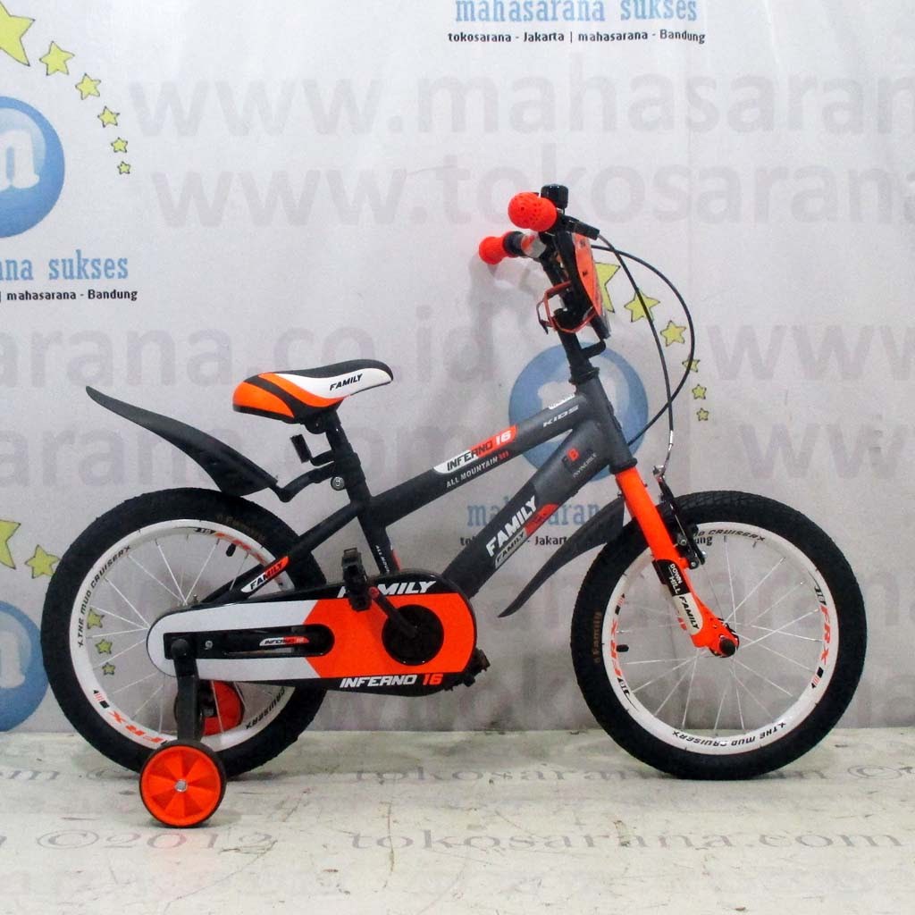Sepeda family inferno 12. Cocok sekali digunakkan bagi buah hati anda yang masih proses belajar mengendarai sepeda. Di mana sepeda ini dapat memberikan rasa aman dan nyaman ketika anak mengendarainya. Brand family kembali menghadirkan model terbaru sepeda anak inferno boy dengan kombinasi warna hitam dan orange yang terlihat unik dilengkapi aksesoris sepakbor penutup rantai semakin menambah ketangguhan serta kenyamanan saat menggunakan sepeda ini. Sepeda family inferno mtb 20 inci anak gunung rp1 765 000 karanganyar wawan jamal 12 feedback positif sepeda bmx exotic 9982 gx rem torpedo new 20 inci freestyle black red.