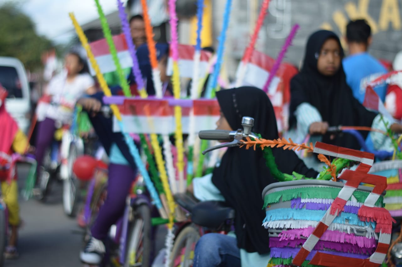 Ikut pawai dengan sepeda hias merah putih memang sudah sangat umum. Sepeda hias anak biasanya paling ramai diikuti peserta.